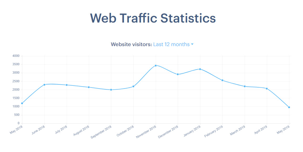 The graph displays the trend of website visitors in the last 12 months. As you can see in this example the trend is negative since the beginning of this year, despite a good start. Perhaps this website needs in update of its SEO settings.